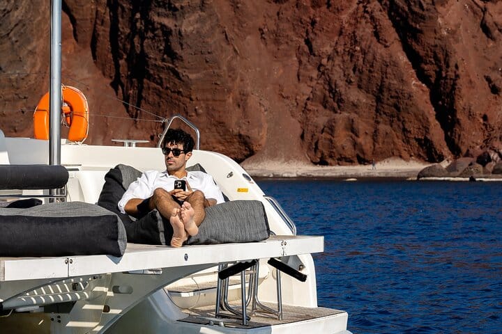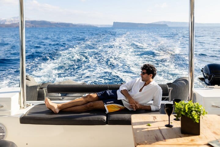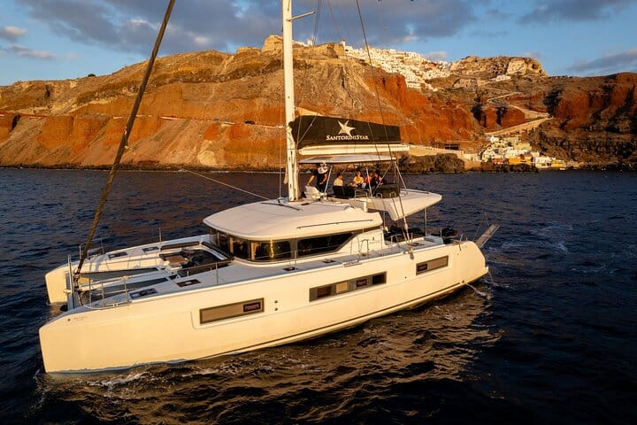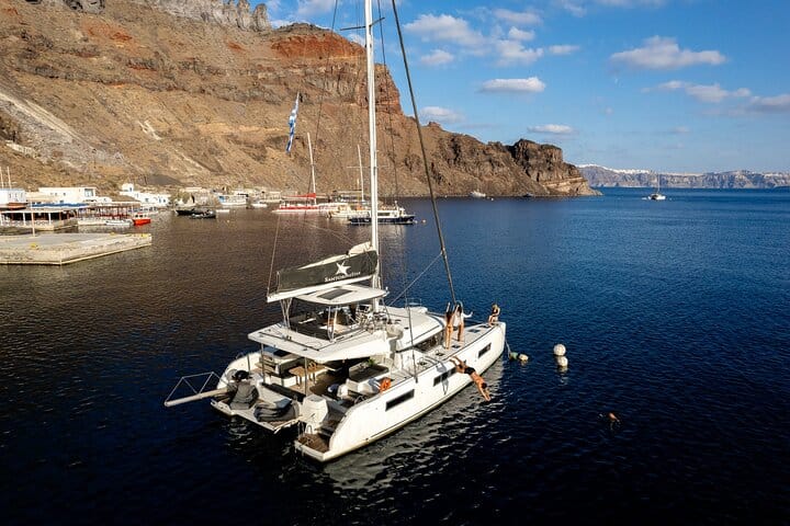 Half-Day Exclusive Catamaran Cruise in Santorini with Meal and Open Bar