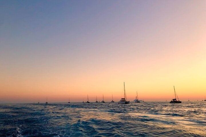 Sail into the soft embrace of sunset, as golden hues lead you back to the serene port of Vlychada.